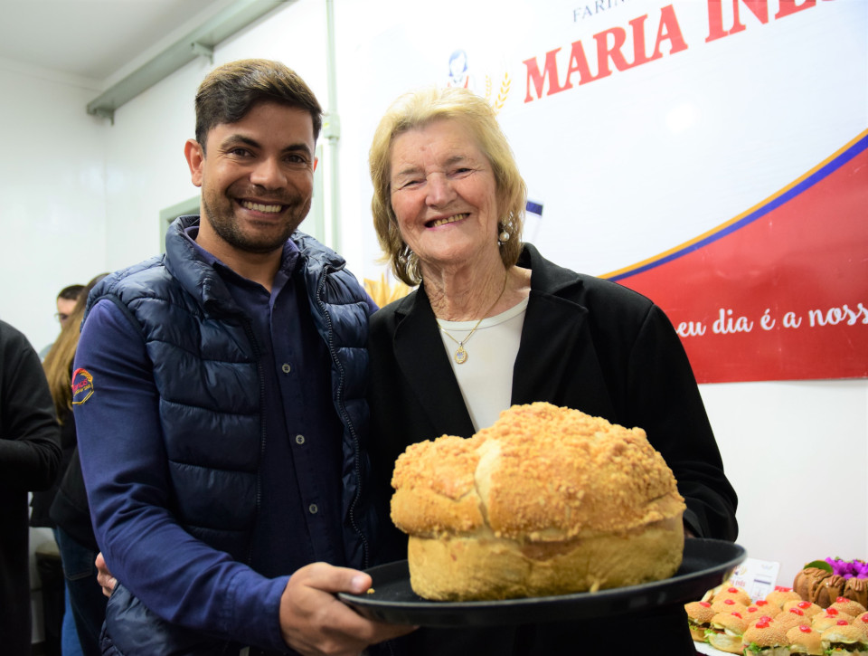 Dona Alzira, outra "nona" entrevistada pelo projeto Saberes e Sabores, e o marido Lino durante lançamento do doc Relatos e Retratos
