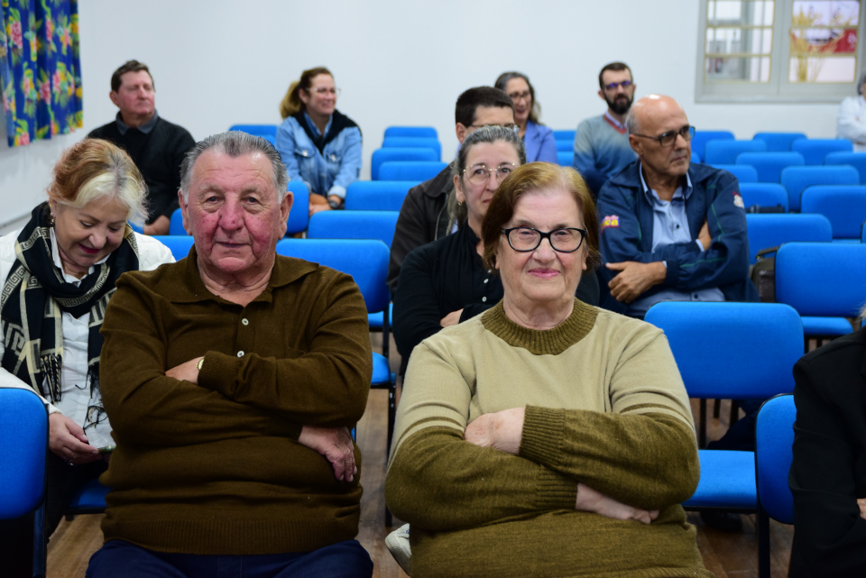 Foto: além das professoras e pesquisadoras responsáveis pelos projetos, as "nonas" e familiares e também participaram do lançamento do documentário