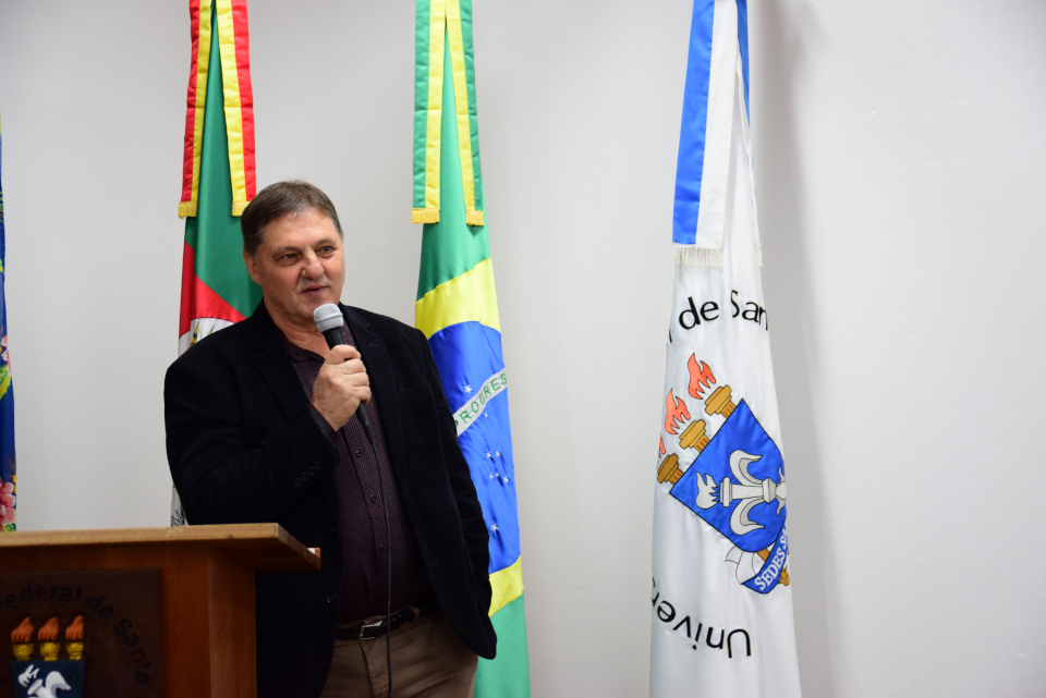 Sadi Tolfo, vice-prefeito de Silveira Martins, durante lançamento do doc Relatos e Retratos