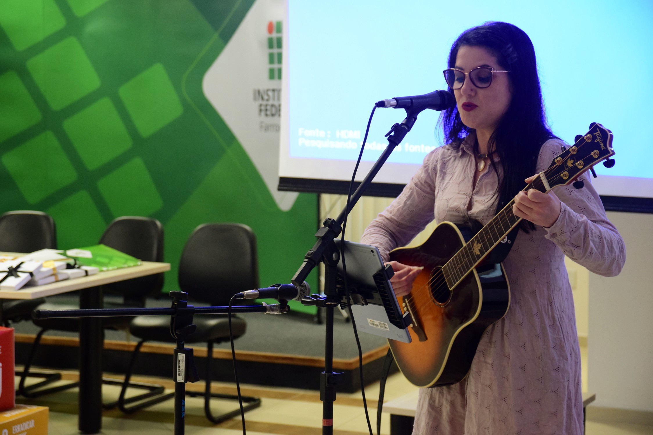Servidora Daiana Carpenedo realiza apresentação musical em momento cultural