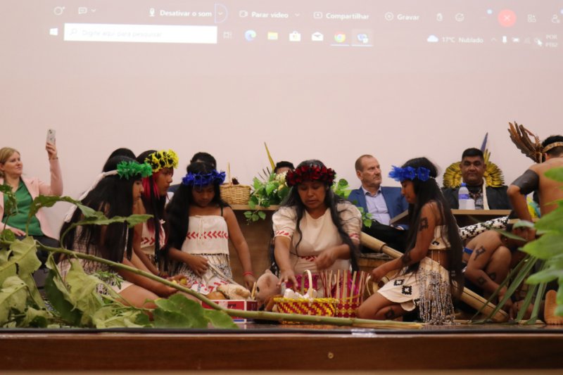 Foto: a abertura da audiência contou com uma apresentação artística da comunidade indígena Terra do Guarita