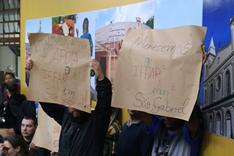 Durante a audiência, foi apresentada uma carta de apoio à instalação do campus do IFFar em São Gabriel. O documento conta com apoio de diversos municípios e setores da sociedade. Além de lotar o prédio da Câmara dos Vereadores, a comunidade local também pode acompanhar a audiência través de um telão montado na praça Fernando Abbbott.