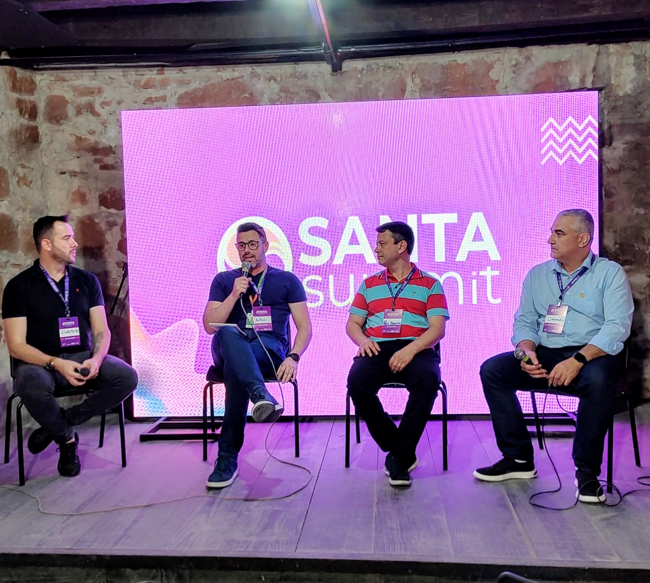 A programação de dois dias do Santa Summit trouxe mais de 50 palestrantes em três palcos. A reitora do IFFar, professora Nídia Heringer, e o pró-reitor de Pesquisa, Pós-Graduação e Inovação, professor Arthur Frantz, foram alguns desses palestrantes.