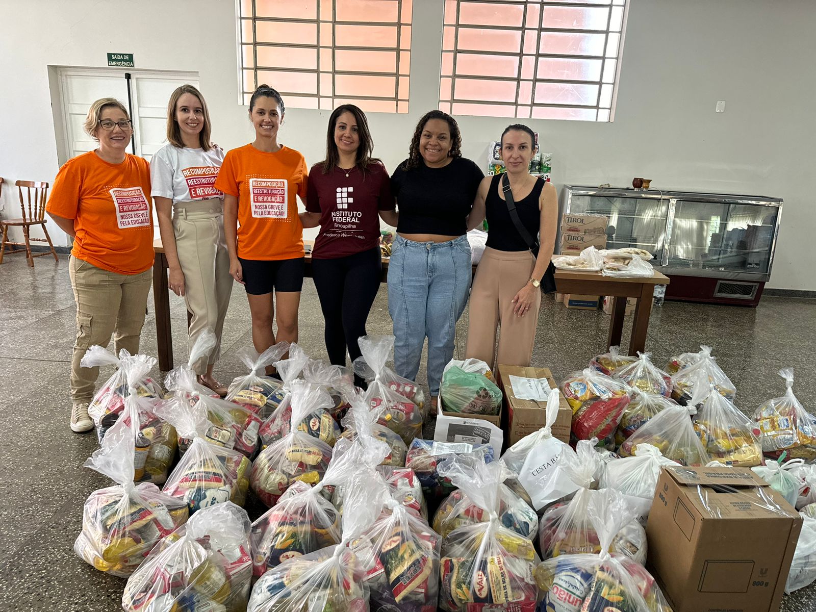 - 13 cestas básicas, 13 kits de material de limpeza, 13 kits de higiene pessoal para estudantes da unidade. O campus também incluiu uma cartela com 30 ovos do Lepep Avicultura em cada kit entregue;
