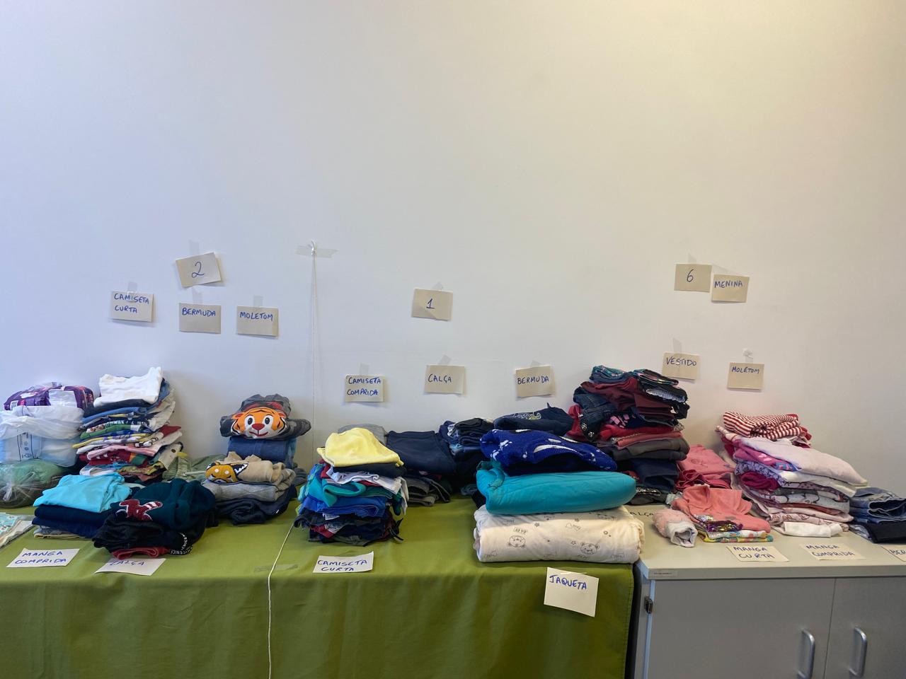 Roupas infantis doadas ao Campus Panambi para organização e distribuição