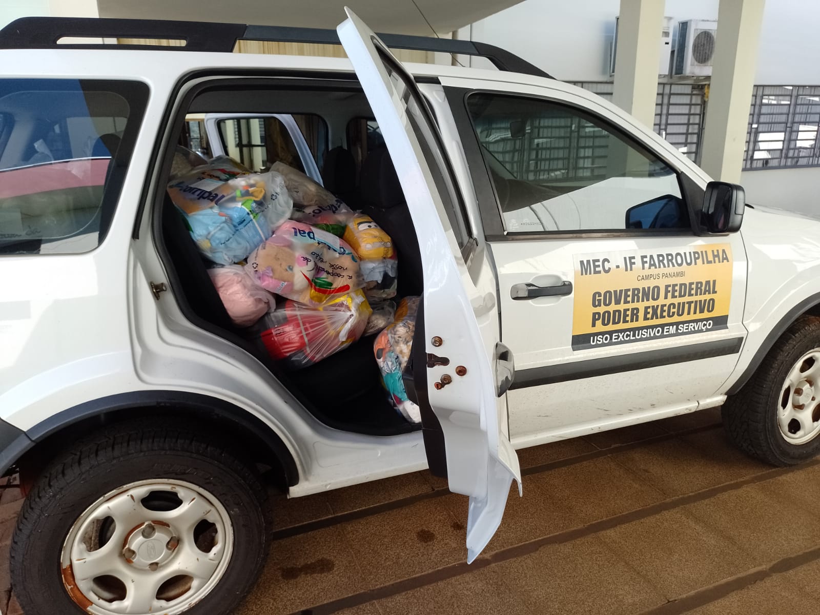 Veículo do Campus Panambi carregado com doações para atingidos pelas chuvas