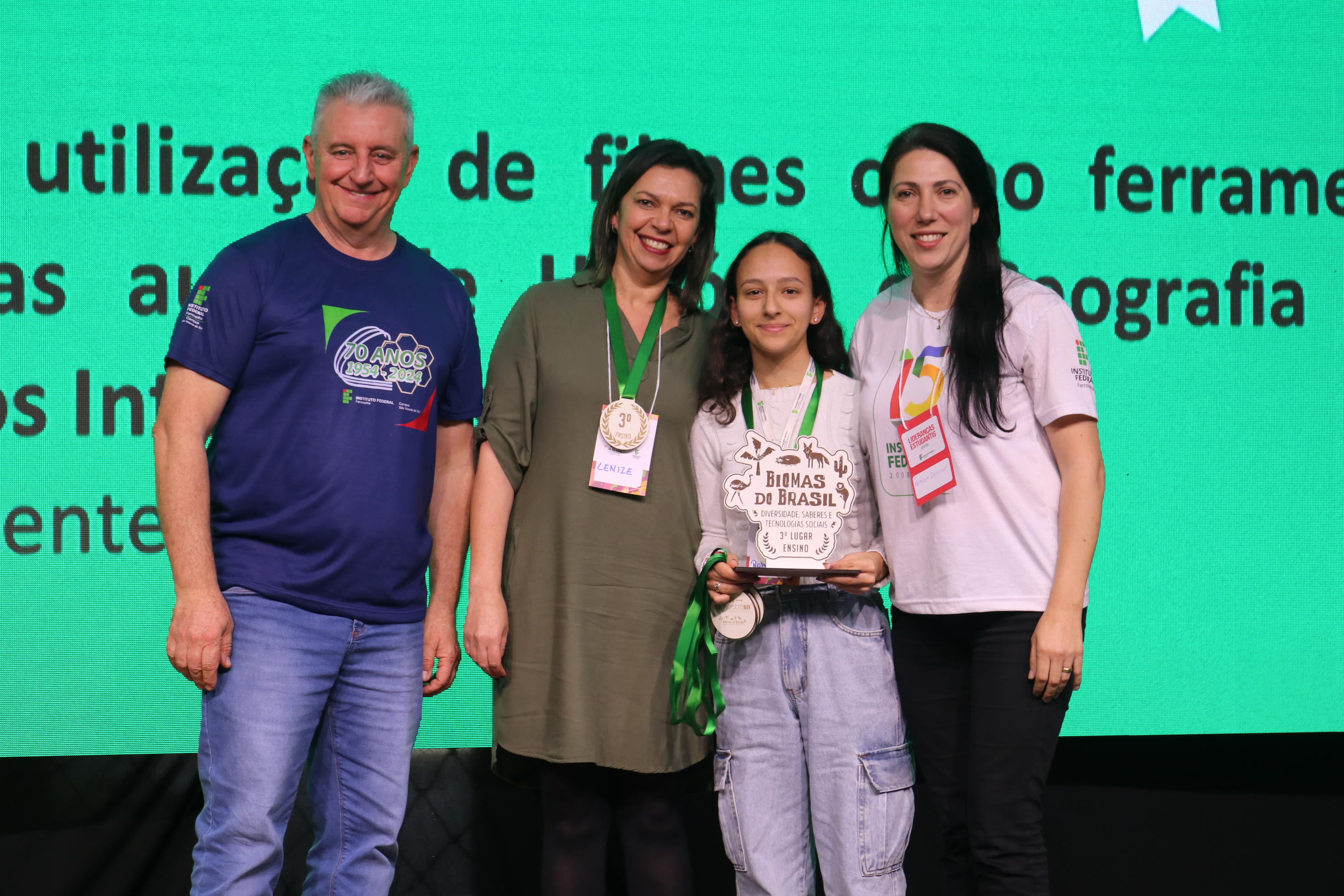 - 3º lugar: A utilização de filmes como ferramenta pedagógica nas aulas de História e Geografia dos Cursos Técnicos Integrados - Campus São Vicente do Sul. Autores: Eduarda Minich Krawczyk, Cynthia Gindri Haigert, Giovan Sehn Ferraz, Lenize Rodrigues Ferreira, Roberta De Almeida Soares