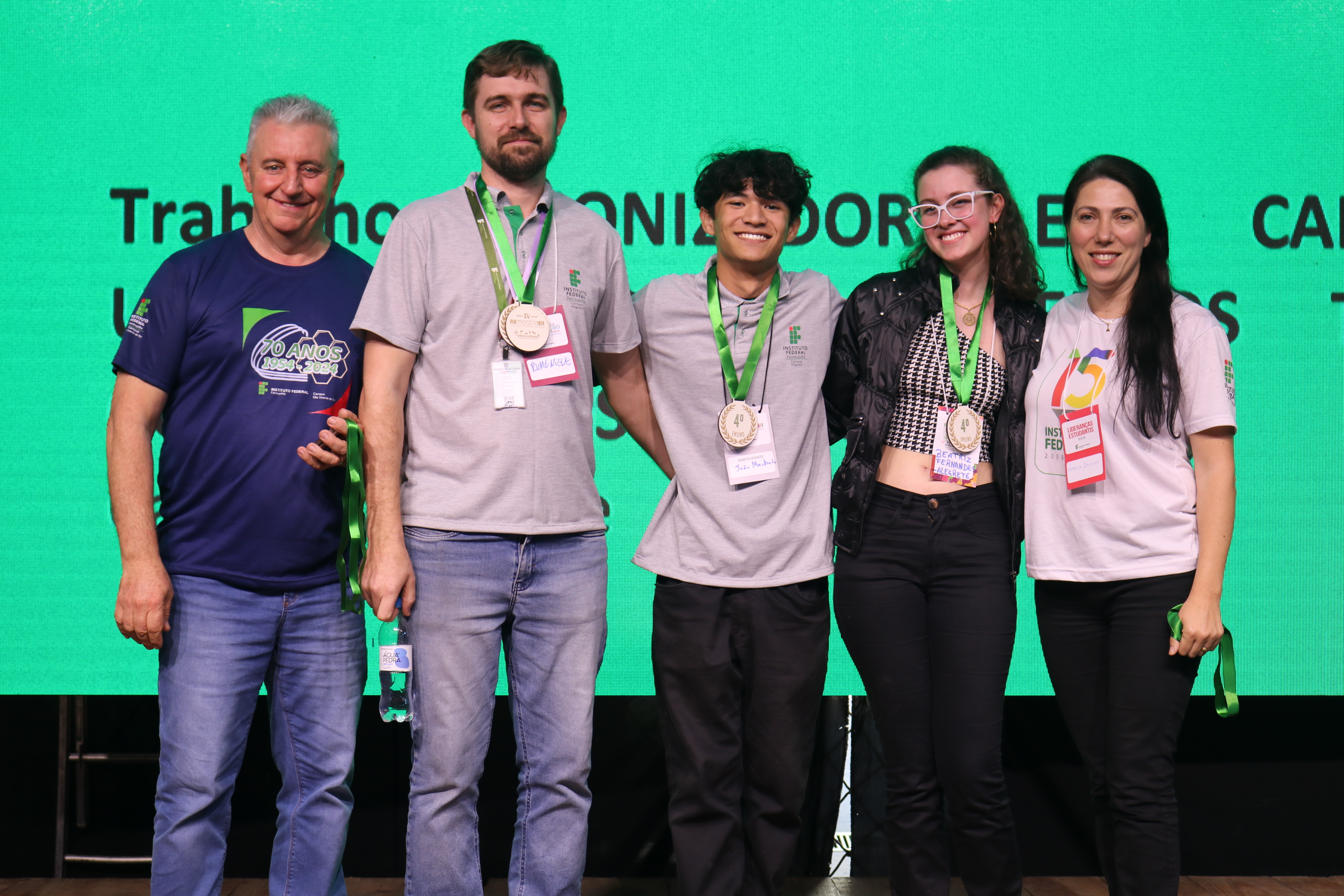 - 4º lugar: Ionizador em Caixa D’Água: utilizando os fundamentos teóricos no cotidiano dos alunos - Campus Alegrete. Autores: Yasser Nayef Murad Munauer, Beatriz Fernandes Cardoso, Matheus Morais Zuneda, João Vitor Da Conceição Machado, Rumenigue Hohemberger