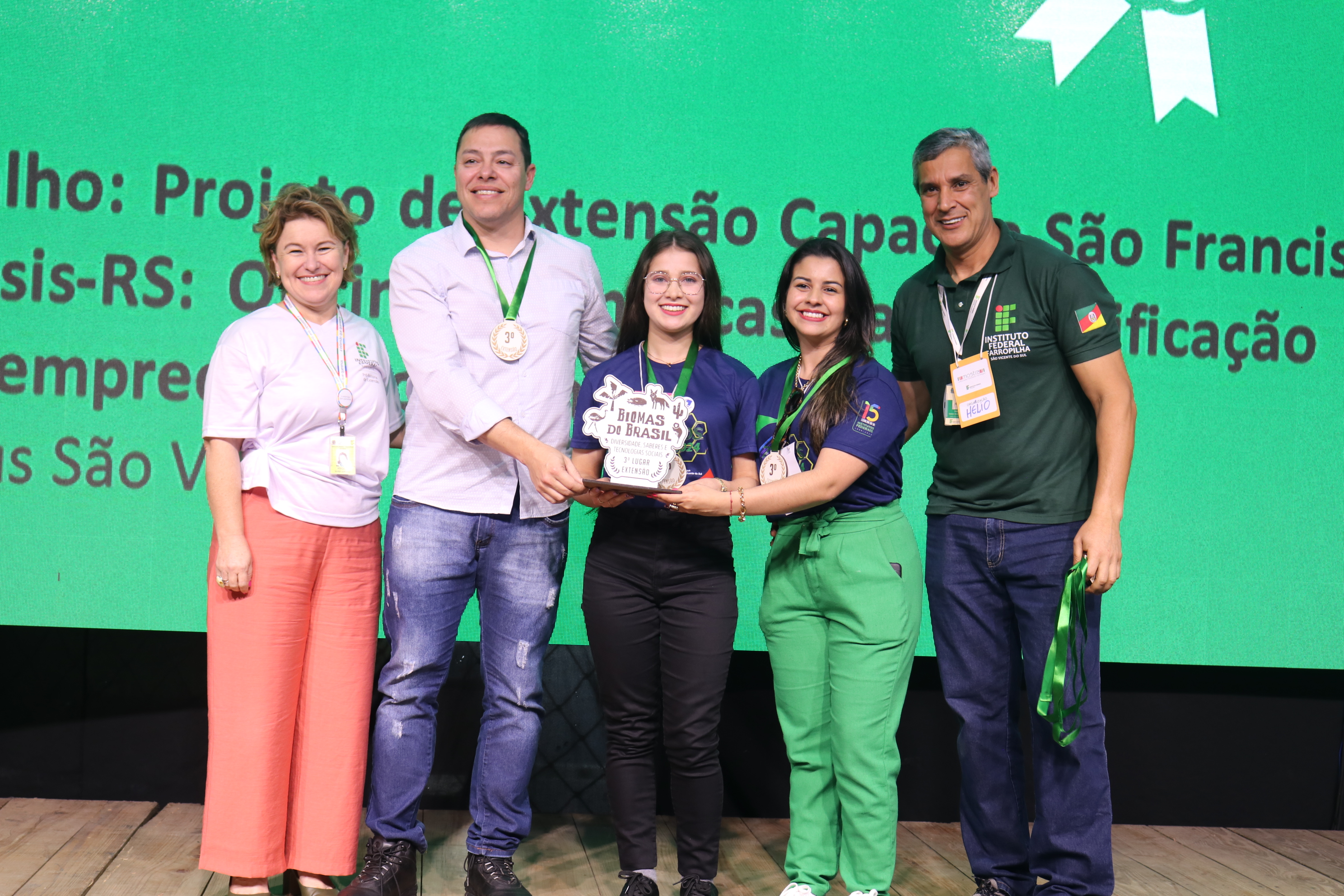 - 3º lugar: Projeto de Extensão Capacita São Francisco de Assis-RS: Oficinas Temáticas para qualificação de Microempreendedores Individuais - Campus São Vicente do Sul. Autores: Lariane Dos Santos Pedroso, Marcia Ferraz Meneghel, Cristiano Martins Vieira, Taiane Keila Matheis, Ariane Simioni, Sabrina Guimarães De Varga