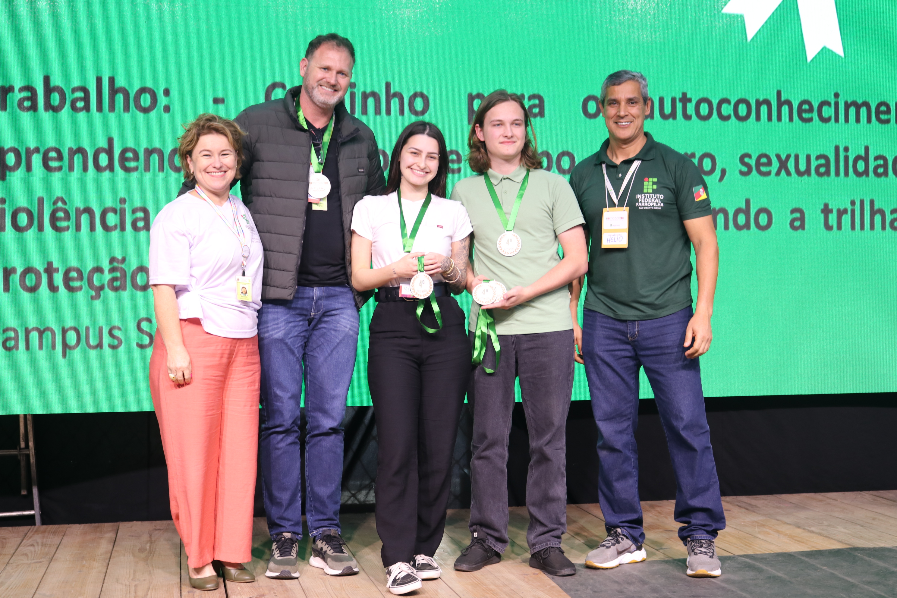- 4º lugar: Trabalho: - Caminho para o autoconhecimento: aprendendo conceitos de corpo, gênero, sexualidade e violência sexual no ensino básico jogando a trilha da proteção - Campus Santa Rosa. Autores: Gabriel Busnello Becker, Noah Ferreira Guedes Da Luz, Milene Carolina Cabral Vieira , Rubia Emmel, Alexandre José Krul, Ana Julia De Oliveira Lino