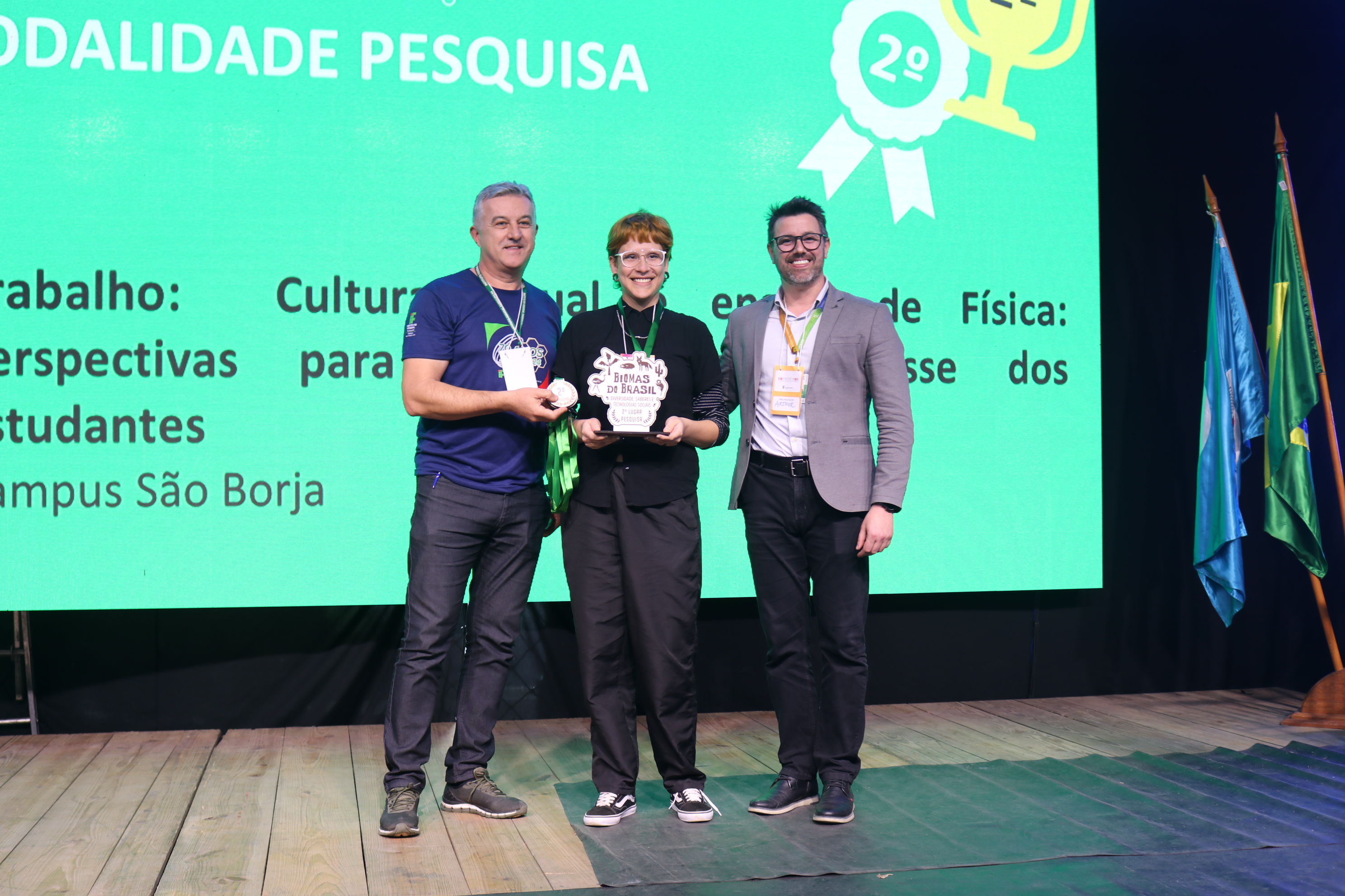 - 2º lugar: Cultura Visual e ensino de Física: perspectivas para despertar o interesse dos estudantes - Campus São Borja. Autores: Jazz Ferreira Da Rosa Martinez, Cristiane Ludwig Araújo, Juliana Zanini Salbego