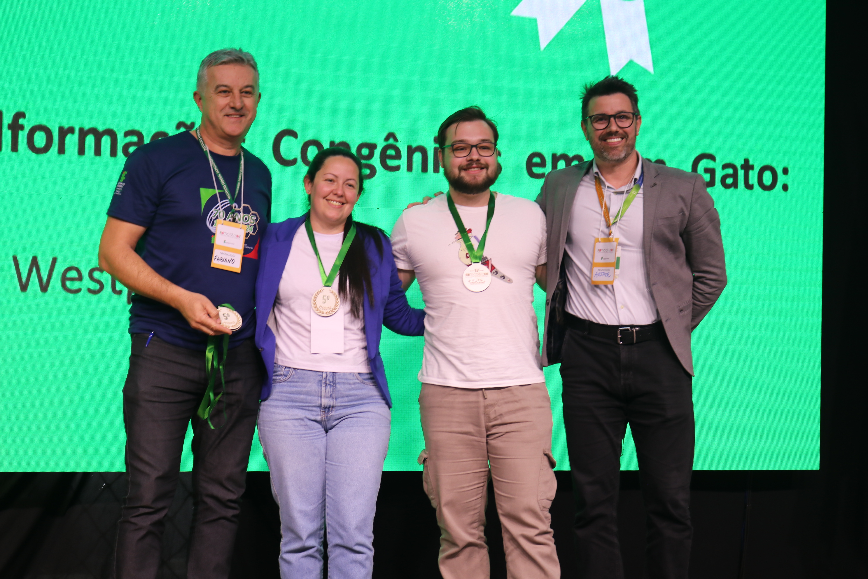 - 5º lugar: Malformações Congênitas em um Gato: Relato de Caso - Campus Frederico Westphalen. Autores: Gabriel Borba Buzatto, Samay Zillmann Rocha Costa, Ana Claudia Franceschi De Lima, Maiara Botton, Marcos Graebin Dos Santos, Laura Presotto , Gabriele De Oliveira Luy