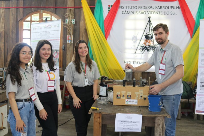 Foto: alunos do IFFar apresentam projeto "Desenvolvimento de uma extrusora de filamento PET" durante a XV Mept, em São Vicente do Sul