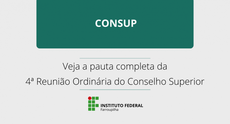 A 4ª Reunião Ordinária do Conselho Superior do IFFar (Consup) ocorre no dia 9 de dezembro, a partir das 9h, com transmissão ao vivo da WebTV. Confira a pauta completa.