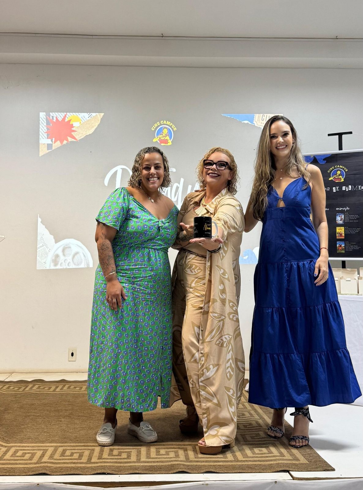 Professoras Sabrina, Carolina e Fernanda, primeira equipe de mulheres a comandar o Cine Campus