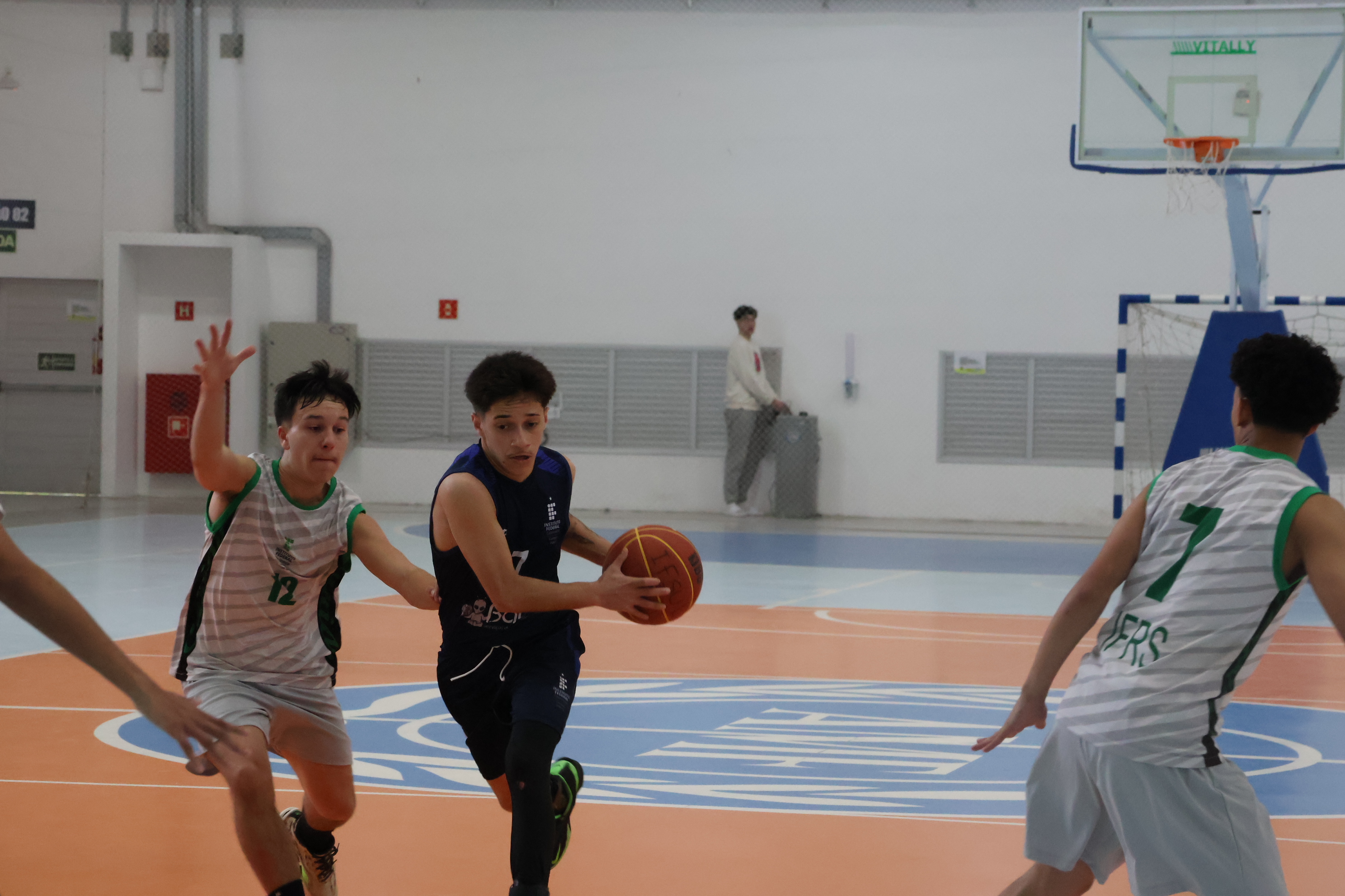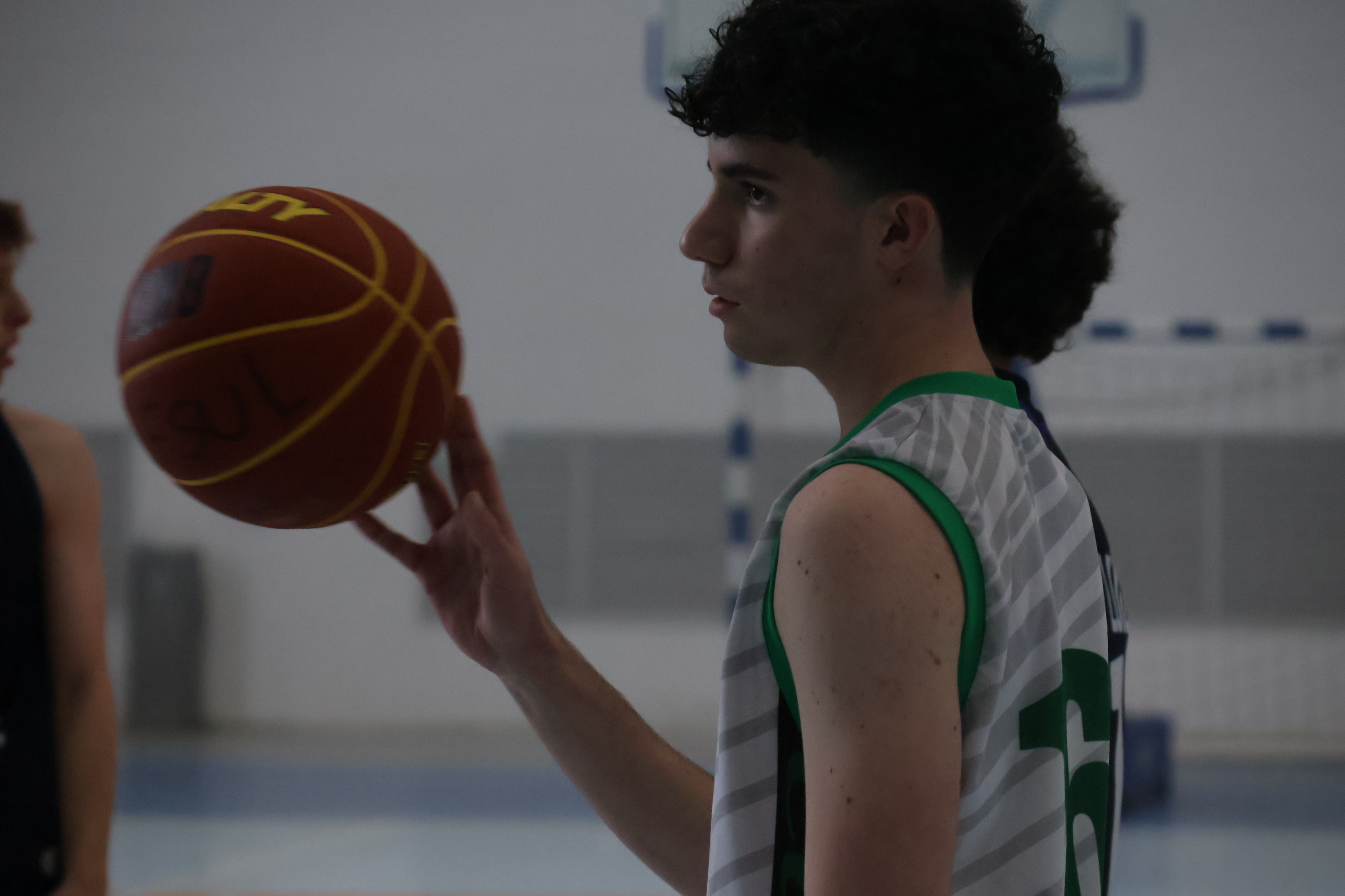 Foto: estudantes do IFRS e do IFFar disputam semifinal do basquete durante o JIFSul 2025