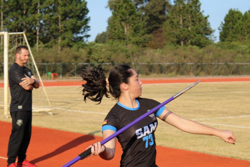 Foto: alunda do IFFar - Campus Santo Ângelo realiza lançamento de dardo na quadra da UFSM, durante o JIFSul 2025
