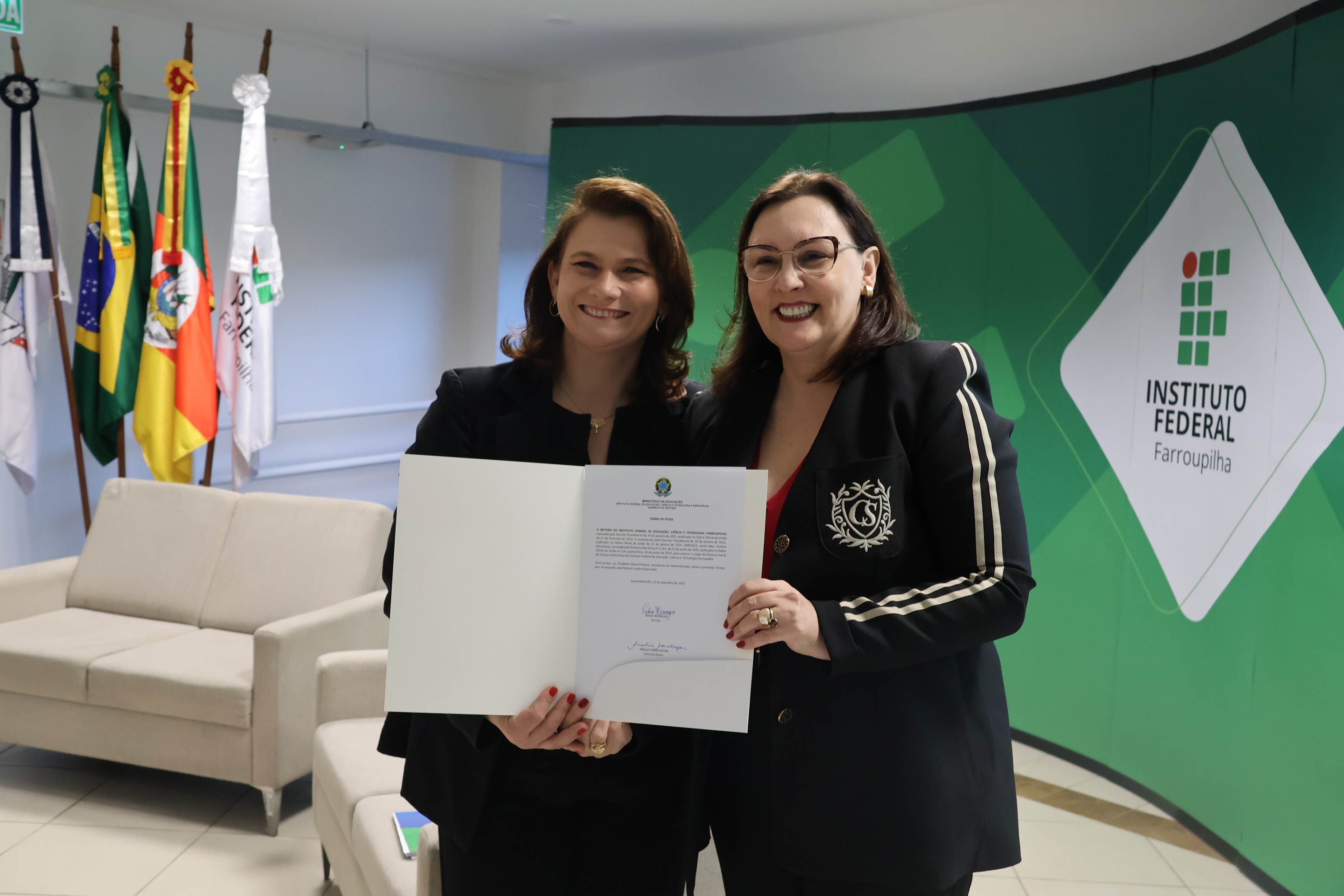 No mês passado, a professora Nídia Heringer foi oficialmente reconduzida ao cargo de reitora do IFFar. A cerimônia teve a participação do ministro da Educação, Camilo Santana, autoridades, imprensa, servidores e cerca de 400 estudantes.