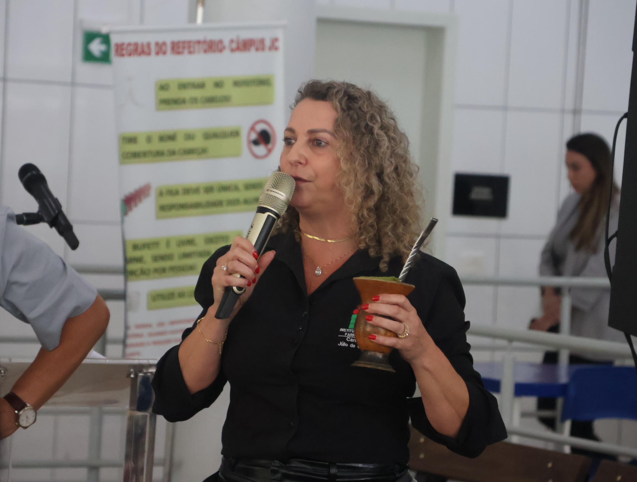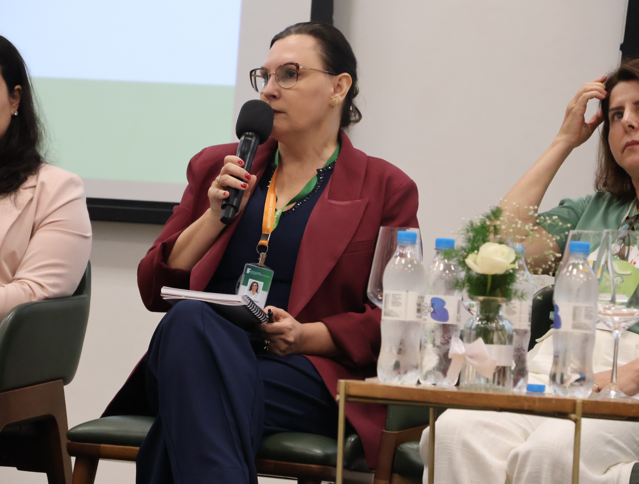 No turno da tarde, o foco voltou-se para o processo de regulamentação do Programa de Alimentação Saudável no Ensino Superior (PASES). A mesa de discussão contou com a participação da reitora do Instituto Federal de Brasília, Veruska Machado, e do reitor do Instituto Federal Fluminense, Victor Barbosa Saraiva, além de Nathalia da Mata Atroch (Fórum de Políticas Estudantis do CONIF), Priscila Oliveira (Diretora de Assistência Estudantil do IFFar) e Cinthia de Andrade Pereira (Chefe da Seção de Assistência Estudantil do Colégio Pedro II), que abordaram a distribuição de recursos, o fortalecimento institucional e a expansão de refeitórios via Novo PAC. O momento também abriu espaço para questionamentos dos participantes do evento aos integrantes da mesa.