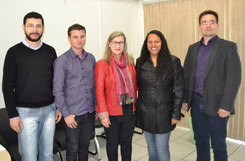 Na foto, os quatro novos servidores que tomaram posse nesta quarta-feira (26) com a professora Raquel Lunardi, pró-reitora de extensão (centro).
