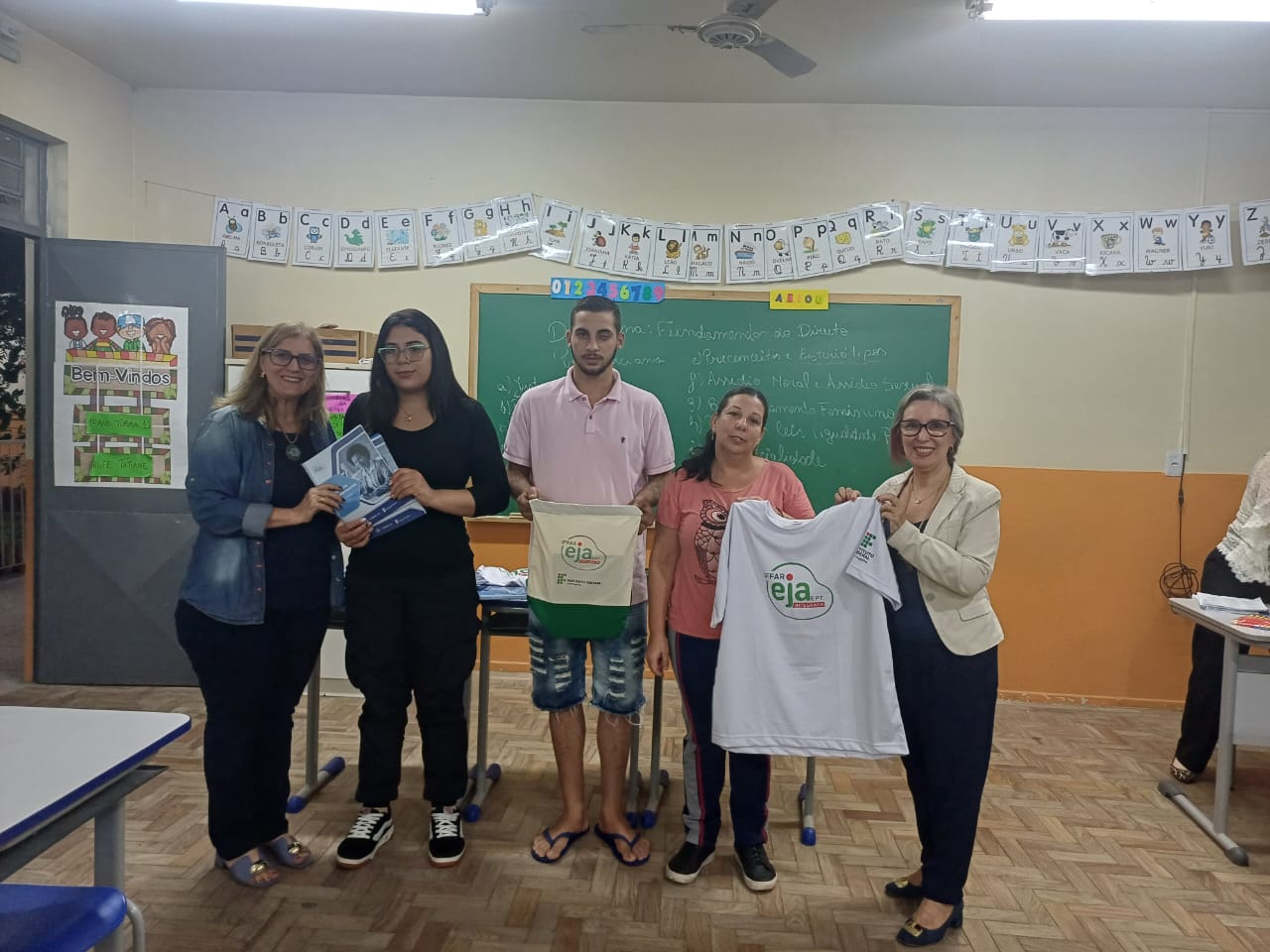 Servidores da Pró-Reitoria de Ensino (Proen) realizaram a entrega de material pedagógico e escolar para alunos matriculados em cursos de Educação de Jovens e Adultos Integrada à Educação Profissional e Tecnológica (EJA-EPT) oferecidos pelo IFFar em Santa Maria. As visitas ocorreram no dia 26 de março.