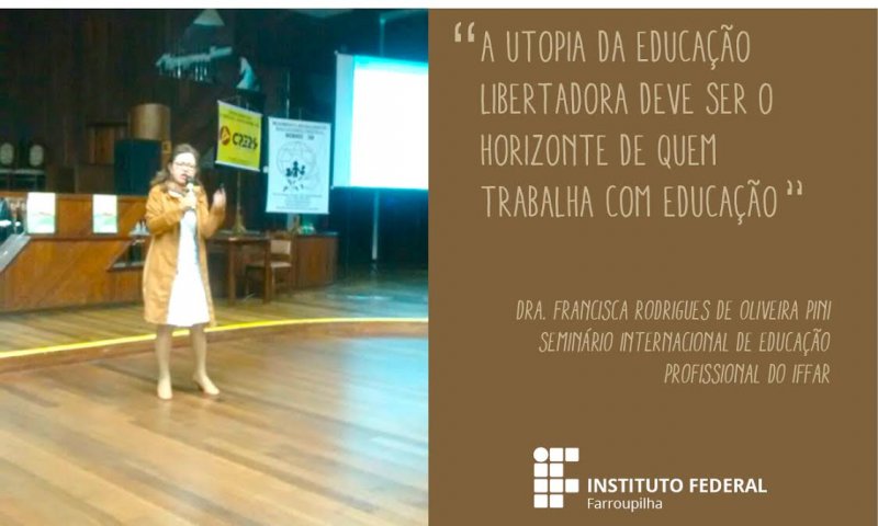 Francisca iniciou sua fala afirmando que a o norte de quem trabalha com educação deve ser a utopia da educação libertadora. "A educação é, ao mesmo tempo, um ato político e uma prática da liberdade, que busca a emancipação e a humanização dos sujeitos no processo educativo".