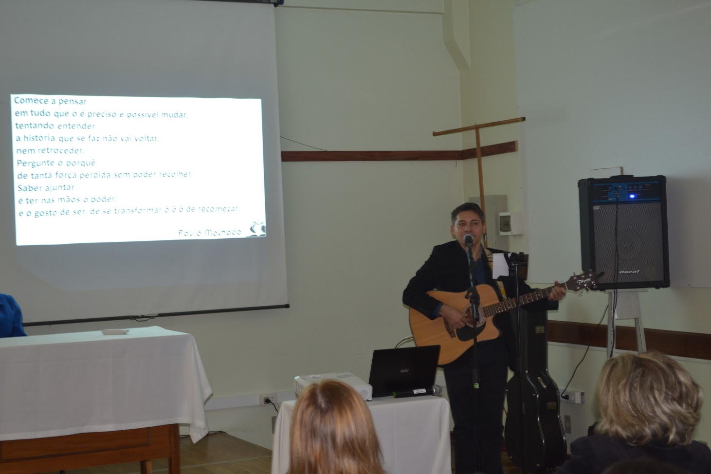 O evento contou inicialmente com uma apresentação artística realizada pelo aluno do Mestrado em Educação Profissional e Tecnológica, ofertado pelo CTISM em parceria com o IFFar, Paulo Machado. Paulo reforçou a necessidade de se ter em mente o verbo “esperançar”, trazido por Paulo Freire, quando se trabalha com educação, uma atividade que exige ter fé no futuro.