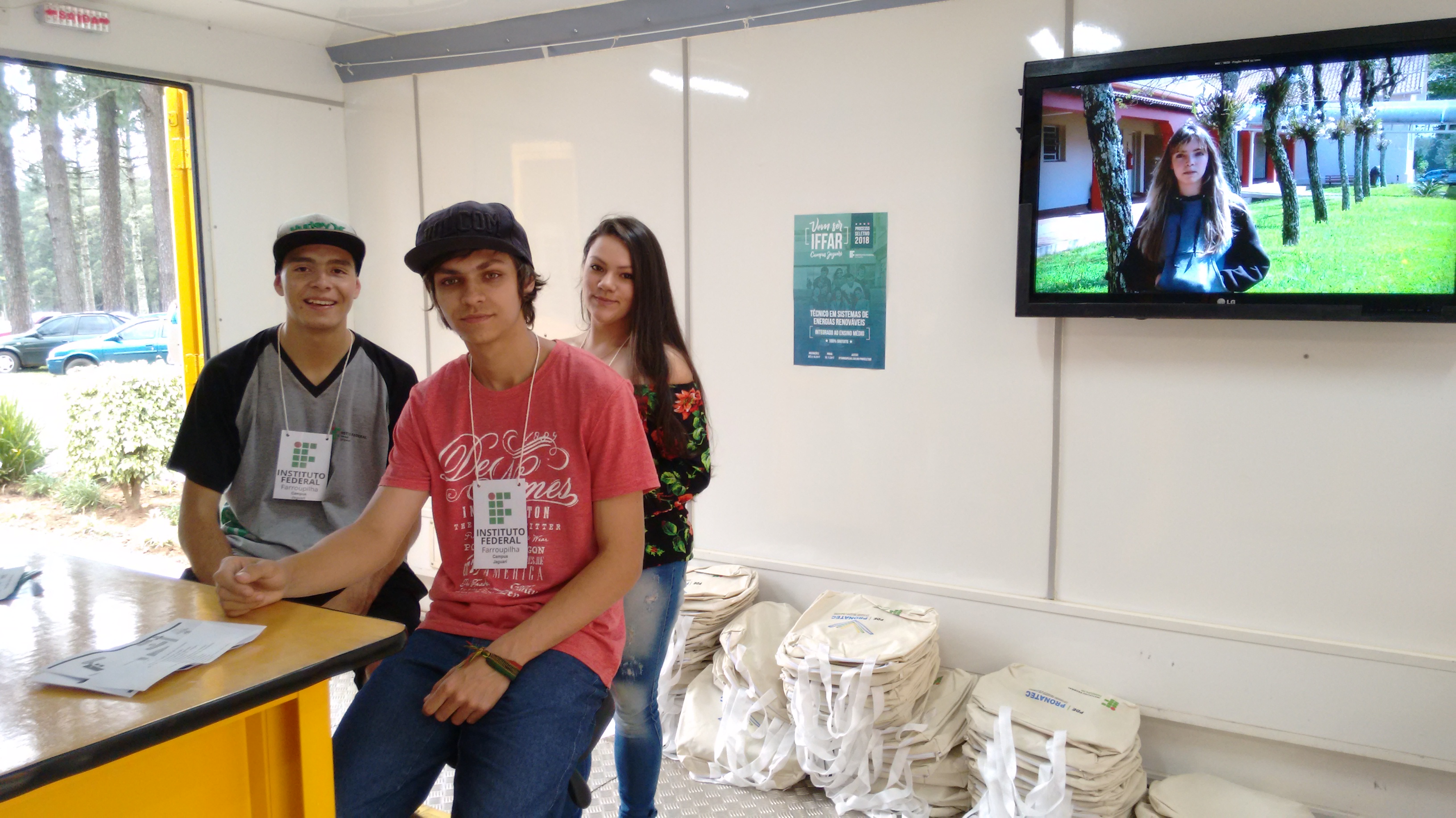 Na tarde do dia 6 de outubro, sexta-feira, o IFFar - Campus Jaguari realizou o Dia da Comunidade, momento em que a instituição abre as portas para que visitantes possam conhecer a estrutura do campus - seus laboratórios, salas de aula, biblioteca, sala de convivência, dormitórios, refeitório estudantil, quadra de esportes e campo de futebol. A comunidade também pôde conhecer professores, alunos e técnicos-administrativos que trabalham por lá, além de obter informações sobre os cursos ofertados e realizar a inscrição no curso técnico subsequente em Sistemas de Energia Renovável, cujo processo seletivo está aberto até 3 de dezembro.