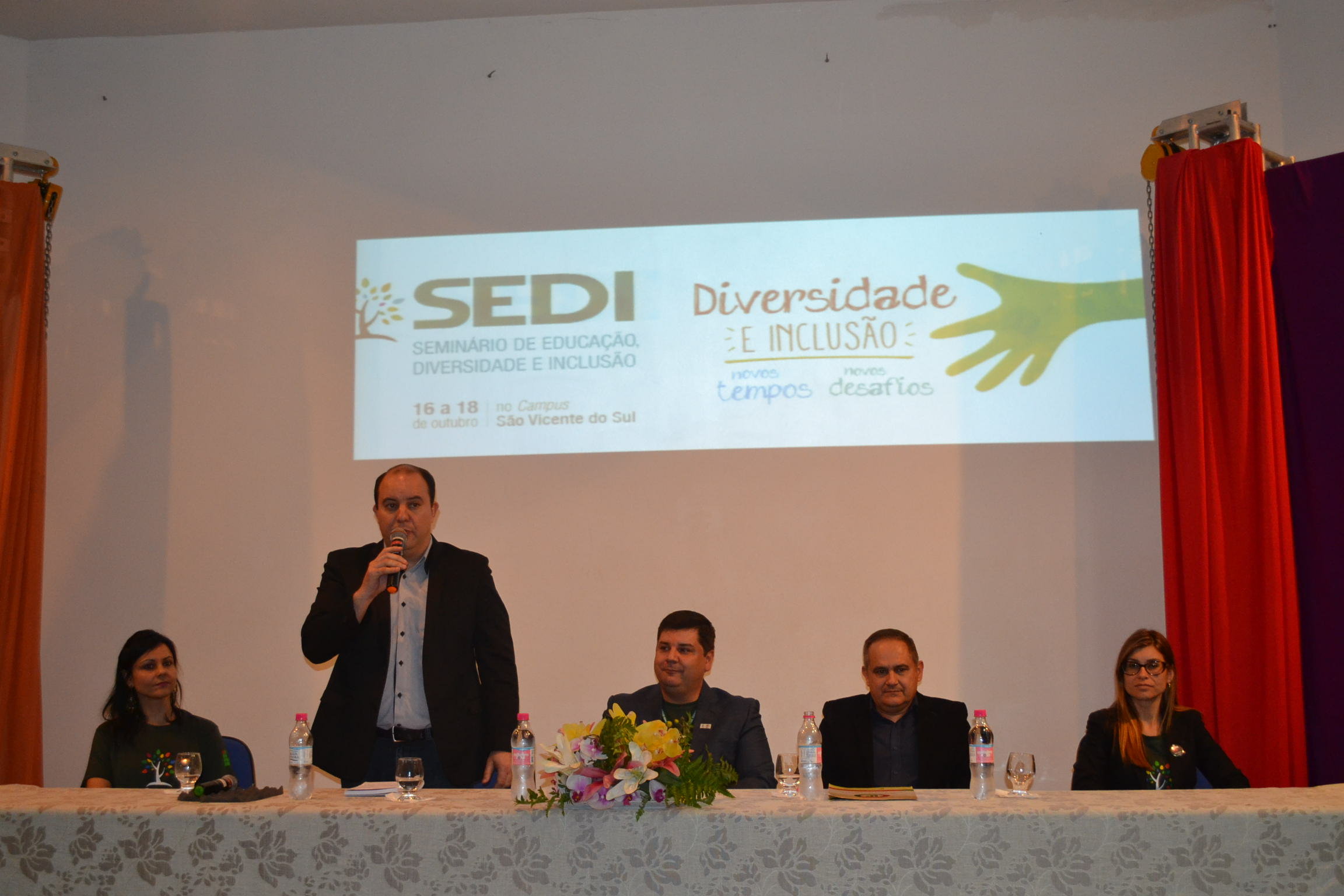 Hoje (16) a quarta edição do Seminário de Educação, Diversidade e Inclusão (SEDI) iniciou no Campus São Vicente do Sul. O evento, que é voltado para estudantes do ensino superior, servidores públicos e professores da rede pública de ensino, segue até quarta-feira.