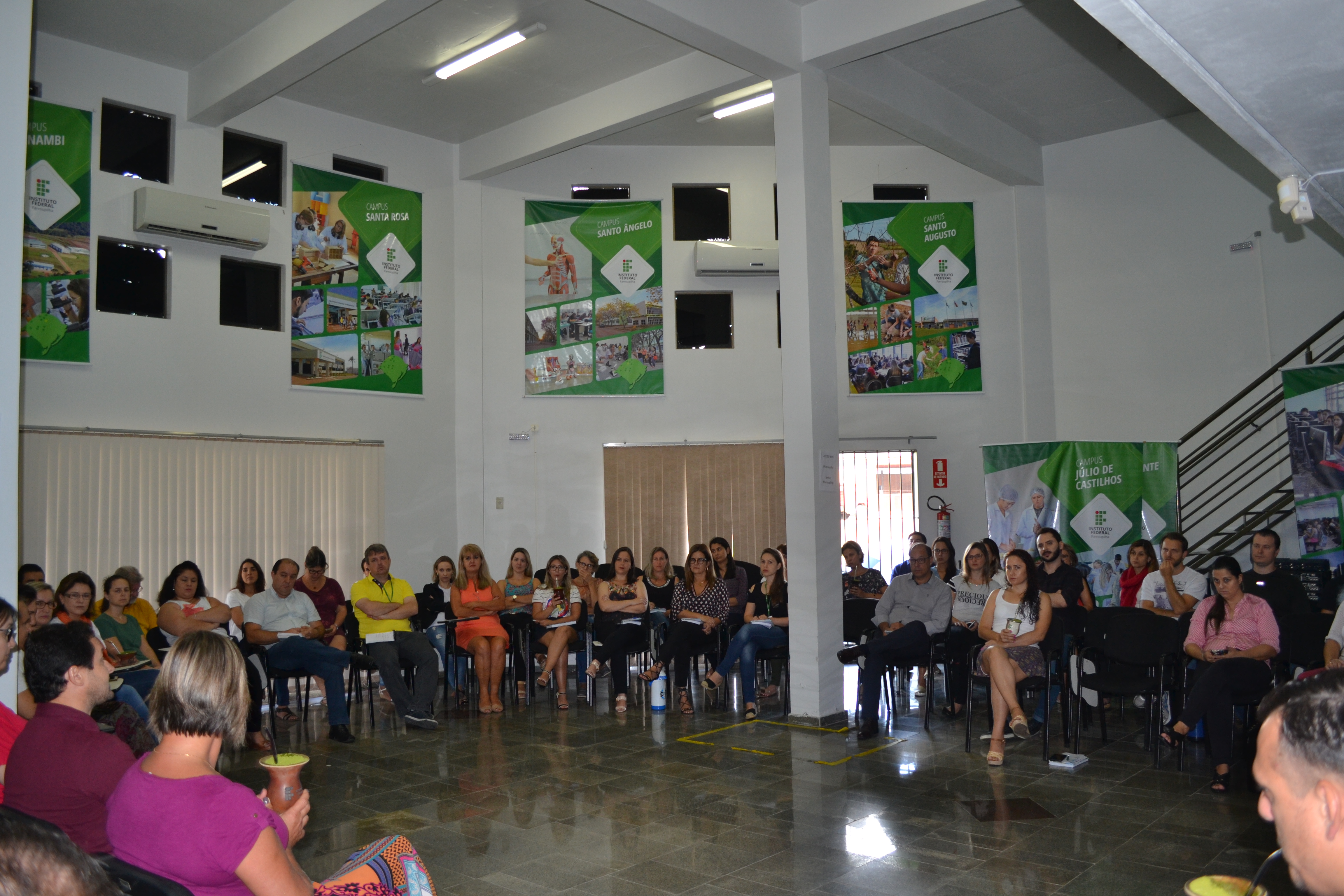 Hoje (26) os servidores da Reitoria participaram da abertura oficial do ano letivo no auditório. A Reitora e os Pró-reitores deram as boas-vindas e discutiram os reflexos do cenário político atual na educação profissional e tecnológica.