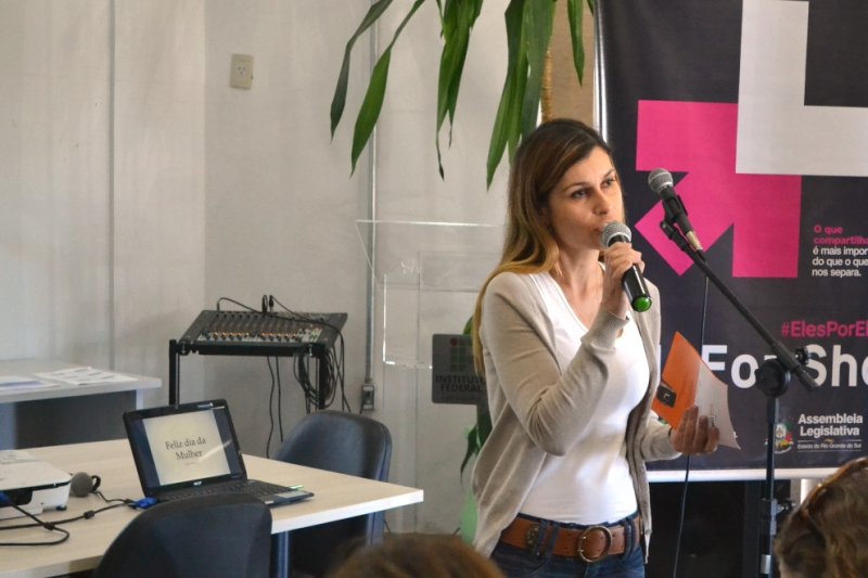 Foto: a coordenadora de Ações Inclusivas do IFFar, Fernanda Machado, fez a fala de abertura da palestra