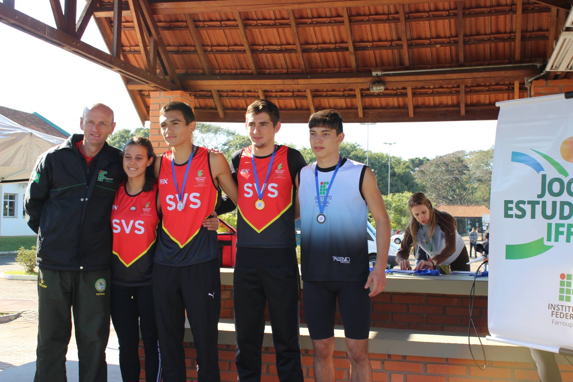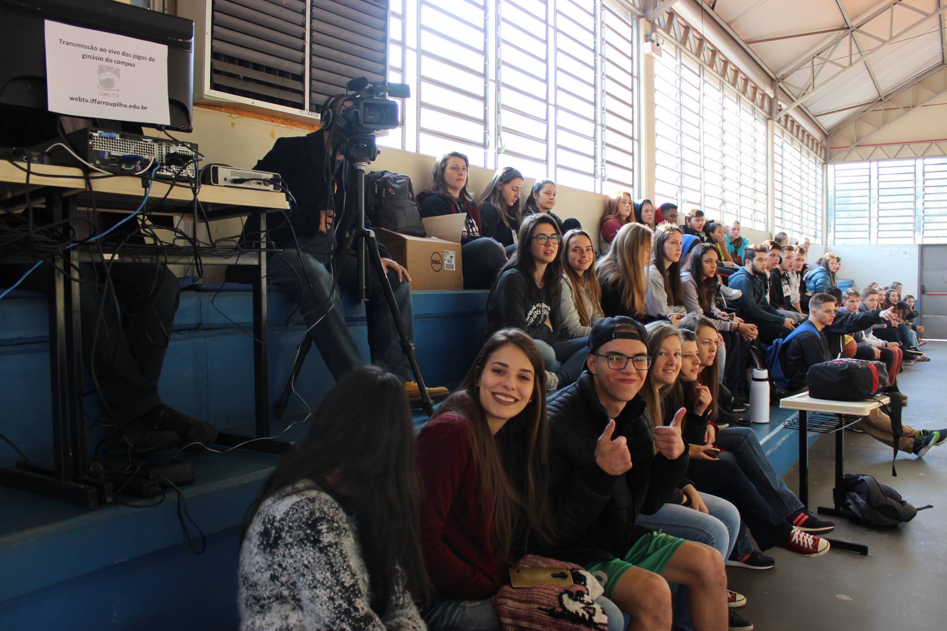 A transmissão dos jogos que ocorrem no ginásio do campus são transmitidos pela WebTV do IFFar através do link: http://webtv.iffarroupilha.edu.br/.